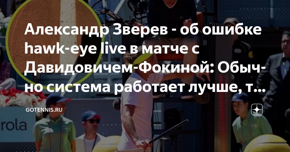 29-я ракетка мира Алехандро Давидович-Фокина прокомментировал инцидент с системой hawk-eye live, произошедший во время его матча против Александра Зверева в Мадриде.