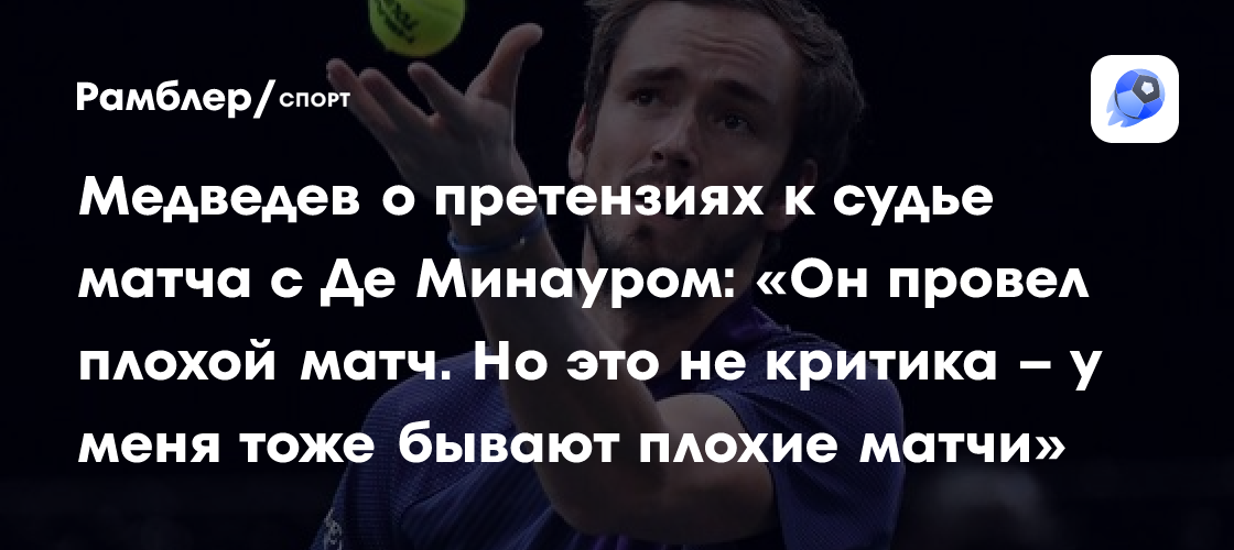 «Де Минаур слишком редко применял угловые удары. Его игра была излишне прямолинейной и предсказуемой, хотя он обладает отличными навыками для точного направления мяча. Медведев, находясь далеко на задней линии и передвигаясь преимущественно по прямой, давал возможность для более острых угловых атак, особенно когда его удары были менее агрессивными», — пояснил Давыденко.
