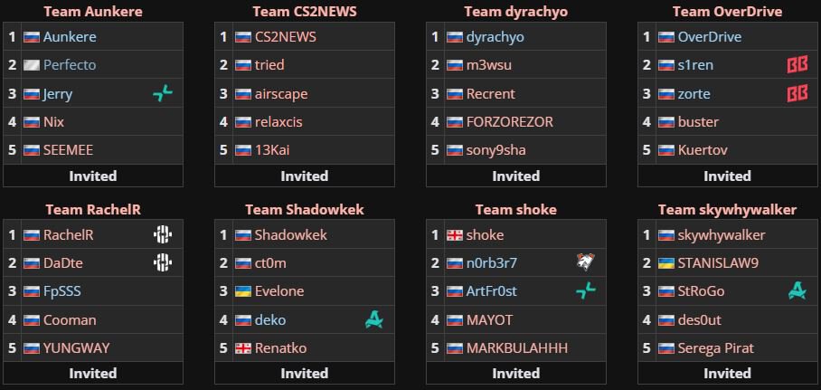 Таким образом, в верхнюю сетку плей-офф успешно прошли команды Team Shadowkek, Team OverDrive, Team Shoke и Team Aunkere. Даты проведения и точные пары матчей основной стадии соревнования станут известны позднее.