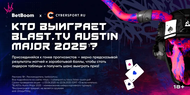 Платформа Cybersport.ru и букмекерская компания BetBoom объявляют о старте совместного конкурса прогнозов, приуроченного к предстоящему крупному турниру по Counter-Strike 2 — BLAST.tv Austin Major 2025. Участвуйте, выбрав свою любимую команду, и получите шанс побороться за ценные призы. Среди наград — сертификаты на портативную консоль Steam Deck, высококачественные игровые наушники от Razer и Alienware, игровая мышь, а также фрибеты (бесплатные ставки).